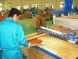 特徴:2004年に稼動を始めたばかりの新しい工場で最新式の設備と意欲に燃えた若い従業員たちによって、高品質・低価格のフローリング材を生産しています。原木から最終製品まで一貫生産を行うことで、高品質・低価格を実現しています。